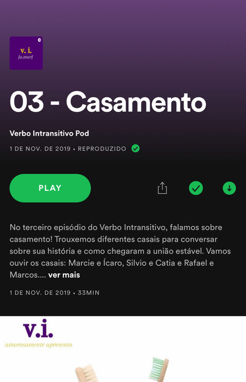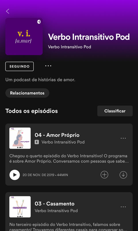 O Verbo Intransitivo foi criado em 2019 a partir da ideia de compartilhar histórias de amor de forma leve com diferentes referências culturais. O podcast possui perfil documental, e cada episódio trazia um tipo de amor como tema (amor próprio, casamento...). Junto com alguns amigos, eu desenvolvia as pautas de cada episódio, procurava entrevistados, editava o podcast e seu roteiro.