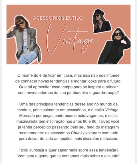 Desenvolvi pautas, textos e imagens do email marketing do e-commerce da loja NB por um ano como estagiária. Analisava resultados e desenvolvia relatórios dos mesmos.